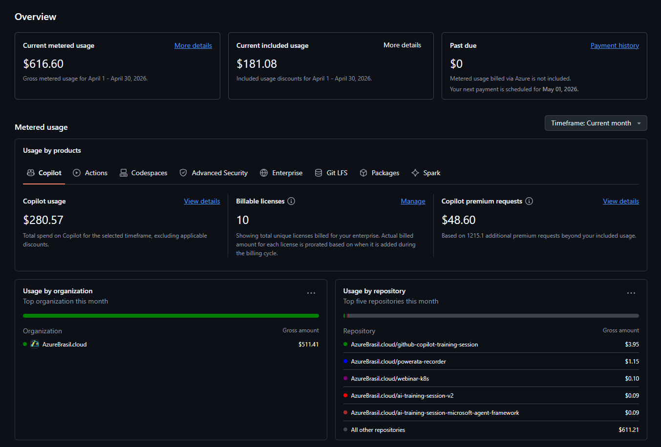 Tem uma alternativa que pouca gente lembra: GitHub Copilot pode ser faturado dentro da sua subscription Azure, como qualquer outro recurso de consumo. Isso significa:
