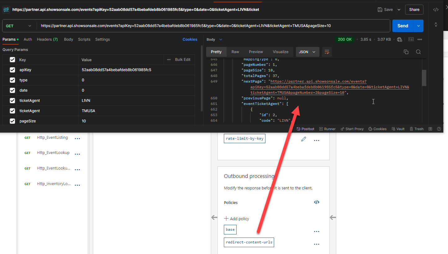 A parte mais importante é garantir que os links de next e previous sejam ajustados para o APIM. Utilizando o método redirect-content-urls, podemos reescrever a URL base da resposta, direcionando os consumidores corretamente para o gateway.