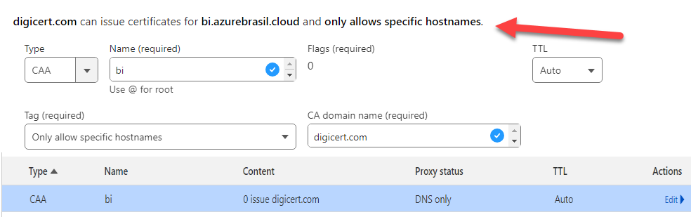 Como diz a documentação, para resolver o problema basta adicionarmos um registro do tipo CAA no nosso DNS.