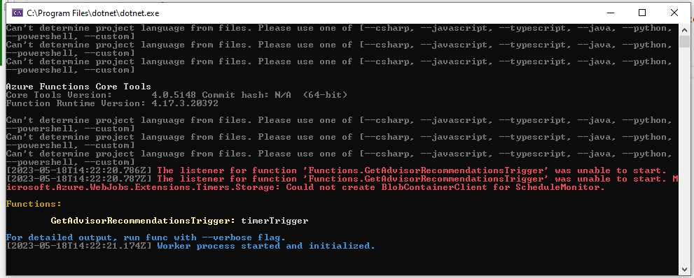 Estou iniciando um novo projeto para os clientes da AzureBrasil.cloud e durante o setup do projeto de functions me deparei com o seguinte erro: