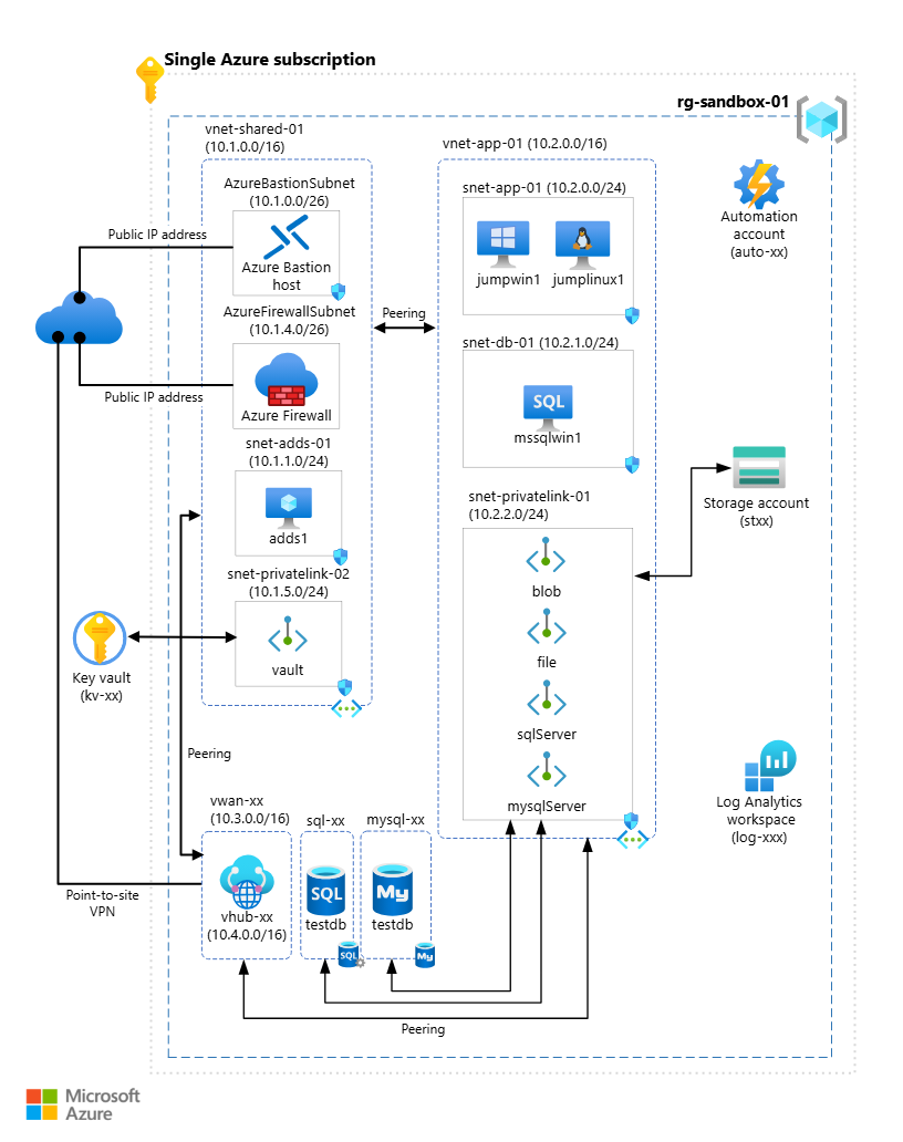 "Azure Sandbox isn't intended for production use. The deployment uses some best practices, but other best practices intentionally aren't used in favor of simplicity and cost."
