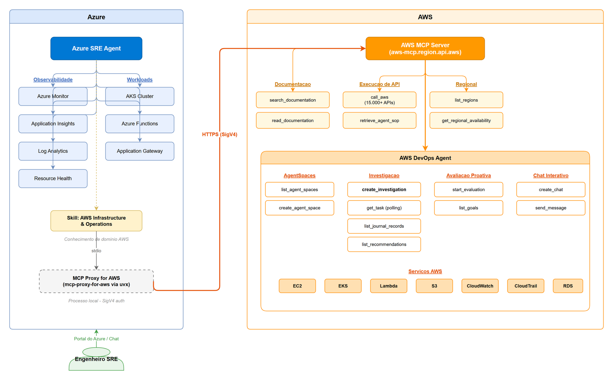 Azure SRE Agent e AWS: investigação cross-cloud com MCP Server e DevOps Agent