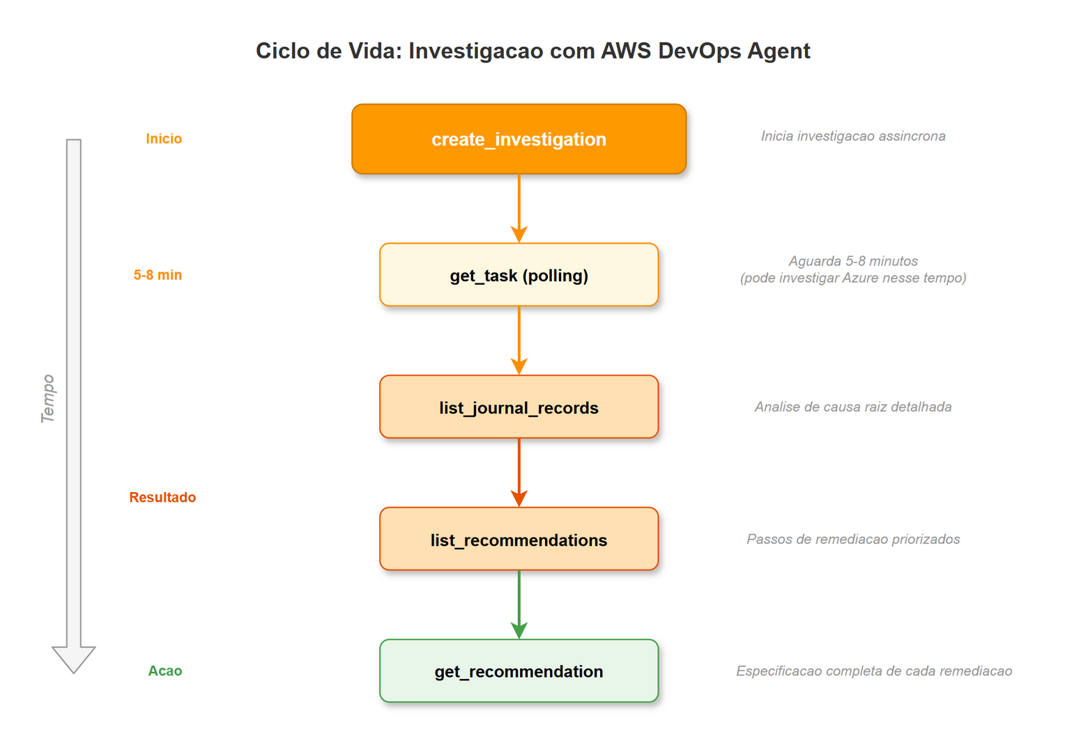 | DevOps Agent | create_investigation, list_recommendations, send_message | Investigação autônoma de incidentes na AWS |