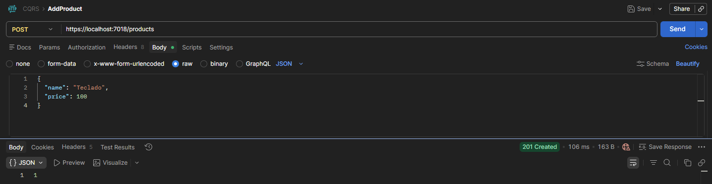 public record CreateProductCommand(string Name, decimal Price);Handler: