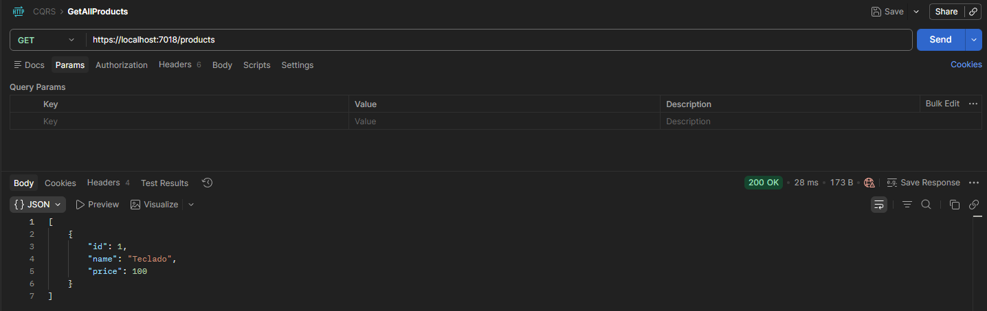 Para facilitar o entendimento, disponibilizei o projeto completo com o exemplo de CQRS, já organizado com separação de responsabilidades e boas práticas: