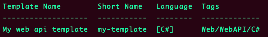 dotnet new install . Podemos verificar se o novo template foi instalado com sucesso listando os templates disponíveis: