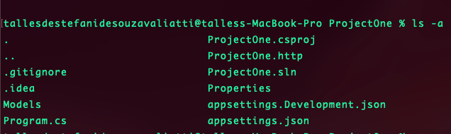 dotnet new my-template --ProjectName ProjectOneObserve que o novo projeto foi criado com sucesso, e como esperado, o diretório .git não foi incluído no novo projeto.