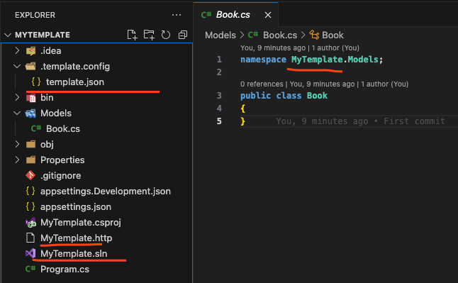 dotnet new webapiVamos adicionar uma classe Book dentro do namespace MyTemplate.Models para fins de exemplo: