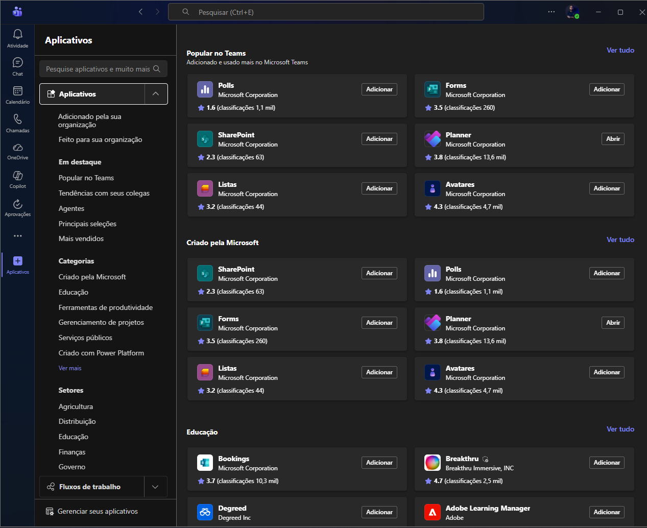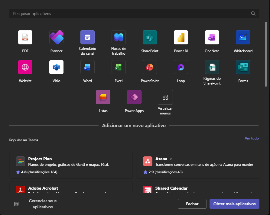 Você pode adicionar aplicativos a chats, canais e equipes, criando um ambiente de trabalho contextualizado para cada necessidade. Algumas possibilidades práticas para explorar incluem: