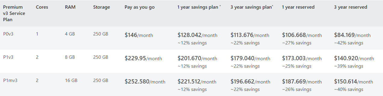 O Serviço de Aplicativo do Azure introduziu duas novas ofertas na camada de serviço Premium v3 (Pv3): P0v3 e P*mv3.