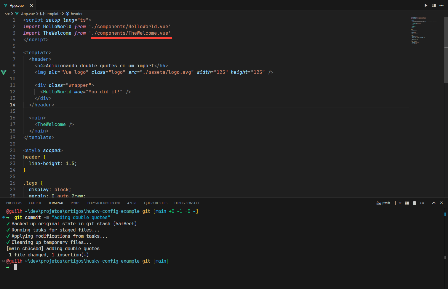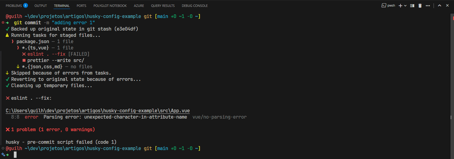 No terminal, execute os comandos seguintes para instalar e configurar o Husky no projeto: