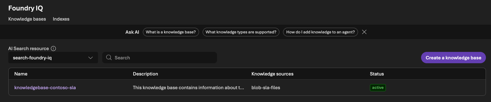 Na Parte 1, montamos a fundação do cenário da Contoso Software: subimos os recursos (Foundry, Storage Account e Azure AI Search), indexamos documentos de SLA no Blob Storage e criamos uma knowledge base no Azure AI Search para habilitar o agentic retrieval via Foundry IQ, deixando o conhecimento pronto para ser consumido de forma padronizada.