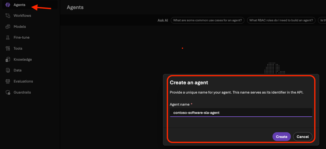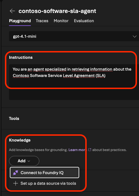 Com a camada de conhecimento conectada, podemos criar o agente no Microsoft Foundry: