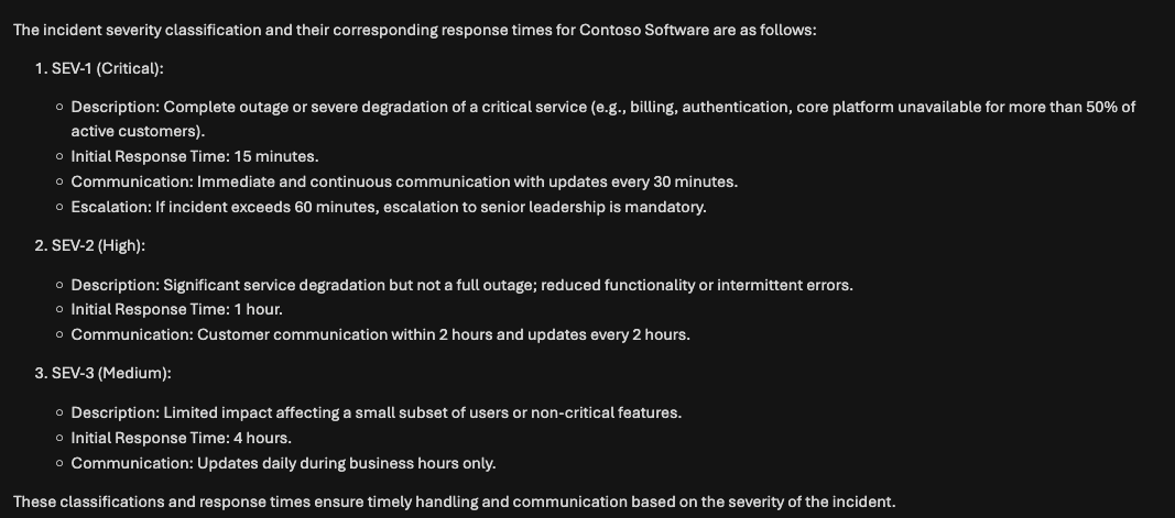 "response time for each incident severity level"