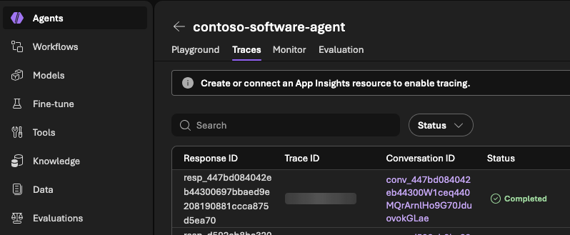 contoso-software-agent) - Define a URL do projeto no Microsoft Foundry