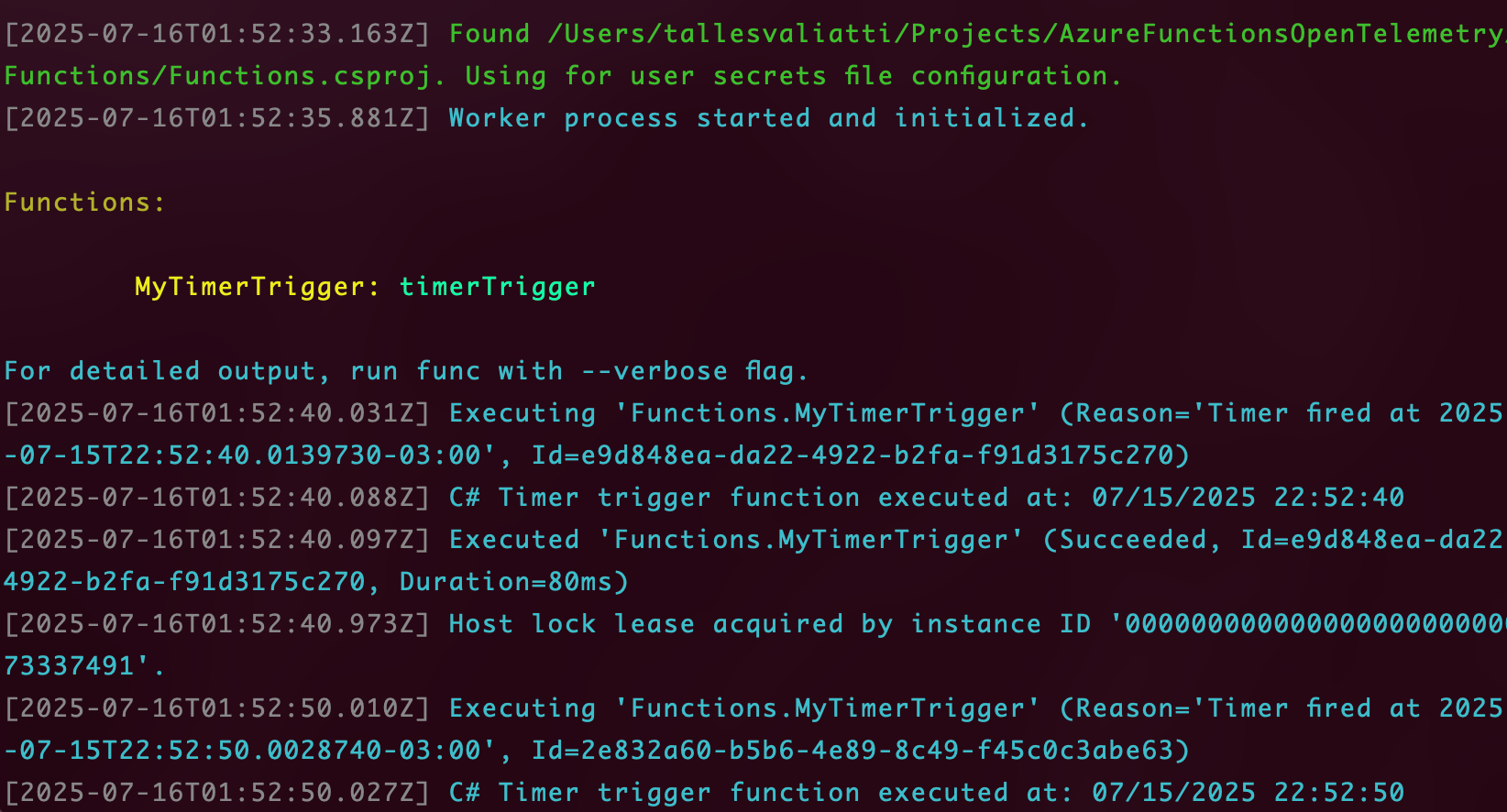 cd AzureFunctionsOpenTelemetry