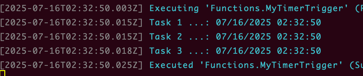 _logger.LogInformation("C# Timer trigger function executed at: {executionTime}", DateTime.Now);