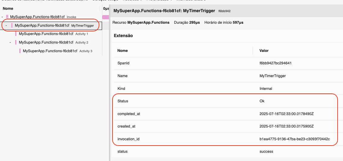 No segundo span, gerado via StartFunctionActivity, podemos ver as tags definidas anteriormente: