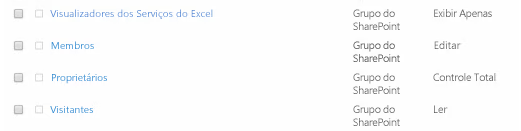 - Grupos do Microsoft 365, Nunca Usuários Individuais: Nunca dê permissão de um site diretamente para a conta da "Maria" ou do "João". Sempre utilize as três categorias de Grupos padrão criadas com o site (baseadas no Entra ID):