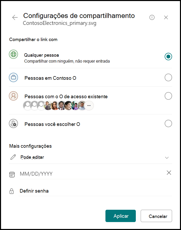 - Pessoas na Organização: Qualquer funcionário com o link pode abrir.