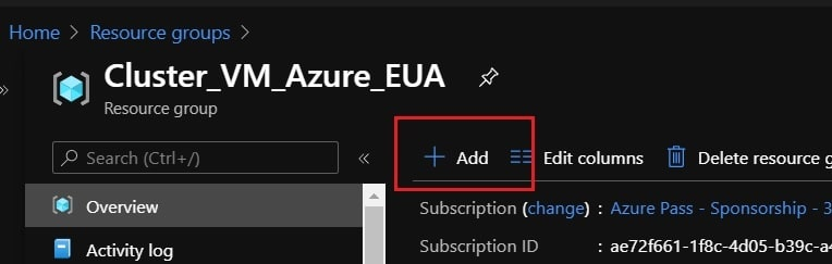 Acesse o Resource Group Cluster_VM_Azure_EUA.