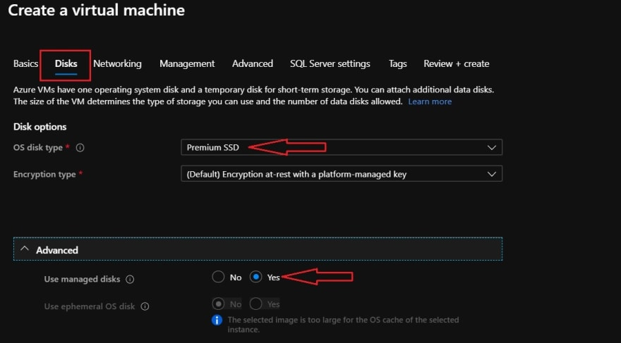 Após isso, clique diretamente em REVIEW + CREATE e após validar as informações, confirme para iniciar o deployment da nossa primeira máquina virtual.