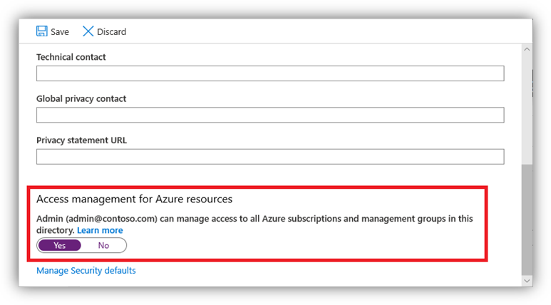 - Selecione Sim para a opção em destaque e clique em Salvar. Você deve fazer o logout e login no portal do Azure para que a medida surta efeito.